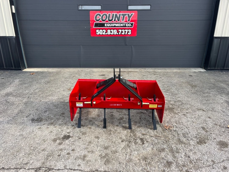 4ft LMC Box Blade. It is in unused condition. 48 inch working width. 1/4” ends. It comes standard with digging teeth and reversible cutting edges. Category 1. $925. 5O2.839-7373