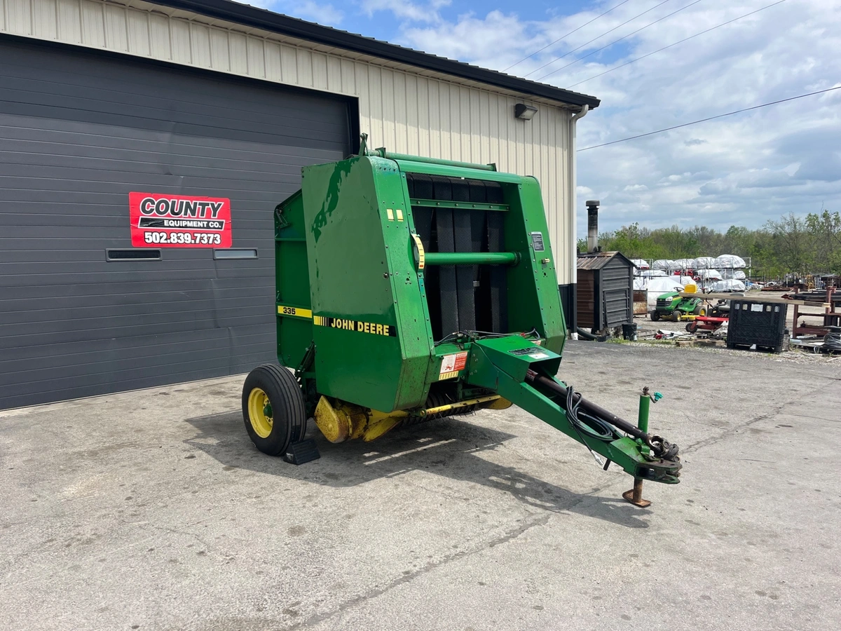 John Deere 335 Baler. It is in good working condition. It makes a 4ft x 4ft bale. Baler is hydraulic tie so no monitor is required. Requires two sets of rear hydraulic remotes. 540 pto. Twine tie. Tires are new. Tractor HP requirements-45 hp minimum. Financing is available. Stock#6168. $6950. 5O2.839-7372